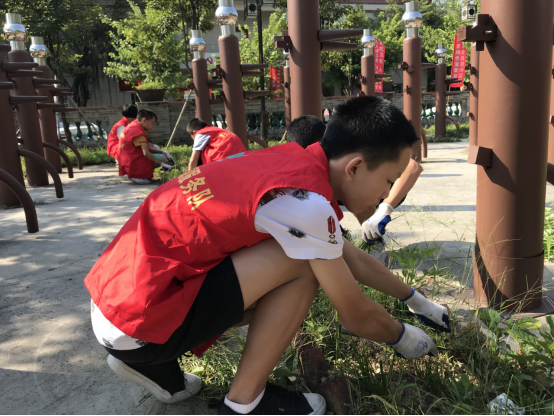 在马东村团委书记的带领下,志愿者们四人一组,挥动手中工具,铲除路边杂草,扫除路面垃圾。鲜艳的旗帜在秋风里高高飘扬,大红色的志愿者马甲耀眼夺目,现场气氛非常热烈。志愿者们发扬不怕苦、不怕累、不怕脏的精神,对马东村的主干道路和健身公园周围进行彻底的清扫。