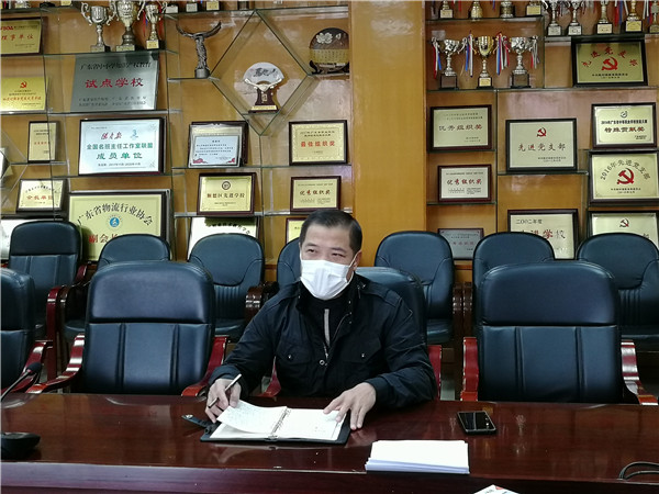 随后,梁泽洪校长汇报了学校的疫情防控工作。一是组织管理。早部署、早落实。学校分别于1月20日、1月24日开始收集统计学生、教职员工的相关信息,在上级通知下发之前已有序开展相关防控工作。于2月1日召开了行政扩大会议,于2月4日召开了行政会,2月6日是第三次防控会议。二是制度建设。制定了陈村职业技术学校新型肺炎疫情防控工作实施方案、开学方案、突发公共卫生事件应急预案、防控方案(学生管理)、“停课不停教、停课不停学”工作实施方案等,指导工作,规范管理。三是工作推进。每天做好信息上报,掌握师生出行轨迹和健康状况。建立一人一册,精准排查重点人员,点对点监控。各工作小组,分工守责,落实广东省教育厅的“四精准、四统一”。在疫情管理和控制方面,加强对六类重点人群管理,落实居家隔离师生监控,规划采购基本防控用品。在宣传和教育方面,利用各种媒体、各种手段发布防控信息及宣传资料,对居家隔离师生做好心理疏导,制作学校防控工作简报。成立陈村职业技术学校党群先锋队,已62人次分别参加了永兴社区、旧圩社区、仙涌村委会和锦龙社区的防控工作。校社联手志愿先行,同心协力抗击疫情,让党旗在防控疫情斗争第一线高高飘扬。