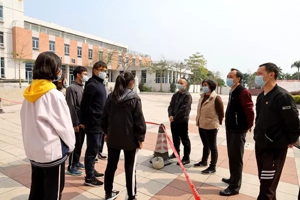 2020年2月19日上午,顺德区委常委、组织部部长练凌东在勒流街道党工委委员卢俞君同志的陪同下,到江义中学检查疫情防控工作,并看望了西藏班学生代表。