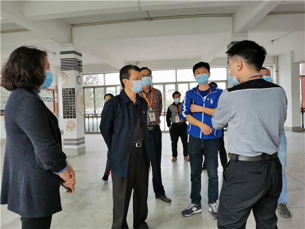 2月24日下午,顺德区人大常委会副主任赖剑辉,陈村镇党委委员、教育局局长杨瑞华一行莅临陈惠南纪念中学检查学校防疫工作和开学前准备工作。