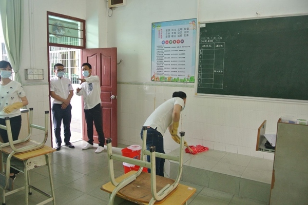 在培训会上,黄贤军校长首先对全校教职工进行了防控新冠肺炎知识培训。并对学校制定的《防控新冠肺炎返校演练活动方案》进行了详细解读,让每一位教师都明确了演练目的、要求、分工及熟悉具体流程。紧接着全体教职工按照各自的角色分工进行了模拟演练。演练有四项内容:一是上学,要求师生入校消毒、测温,当发现有学生体温异常该如何处理;二是上课及午检,要求老师要注意讲台、课桌距离,课室通风,师生防护及午检测温,下课洗手消毒;三是放学课室消毒,要对地面、课桌椅、门把手、讲台进行消毒,通风换气;四是食堂用餐,教师组织学生排队、洗手、拿餐、用餐,教师全方位的管理。演练过程中,黄贤军校长担任了演练总指挥掌控全局,使整个返校演练有条不紊地进行着。黄润琼副主任进行了旁白,引导各角色进入场景,让演练的每一个环节,环环相扣,层层推进。参加演练的人员根据预案逐一进行了演练,演练了上学时学生进校门以及发现发热学生的模拟场景;演练了在课室里老师如何开展上课及午检工作的场景;还模拟了放学了如何对课室进行消毒和在食堂用餐的场景模拟。整个演练过程紧张有序,全体教职工认真投入,达到了演练的预期目的。据悉,本次返校演练活动学校高度重视,对方案经过了多次打磨,注意紧密贴合学校实际,各项环节安排周密,细节考虑周全。