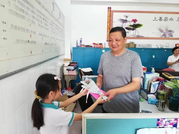 鲜花、诗歌、热茶、掌声、拥抱……全国的第35个教师节如期而至。在这个属于教师的节日里,沙溪镇中心小学举办庆祝教师节主题活动,共同为敬爱的老师庆祝节日。9月10日一大早,同学们一个个来到办公室,为敬爱的老师献上一朵鲜花;送上一张亲手做的卡片;敬上一杯热茶;朗诵一首小诗,充满敬意地对老师们说声:“老师,教师节快乐!”孩子们纷纷用自己的方式来颂扬教师这一光辉的职业,感恩老师们年复一年的付出!