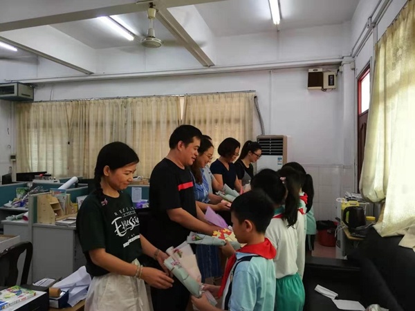 在德育处的组织下,各班的队干积极参与到这次的教师节献花活动,为老师们送去祝福,充分体现了学校的人文情怀!让这个教师节过得“简约而不简单”。