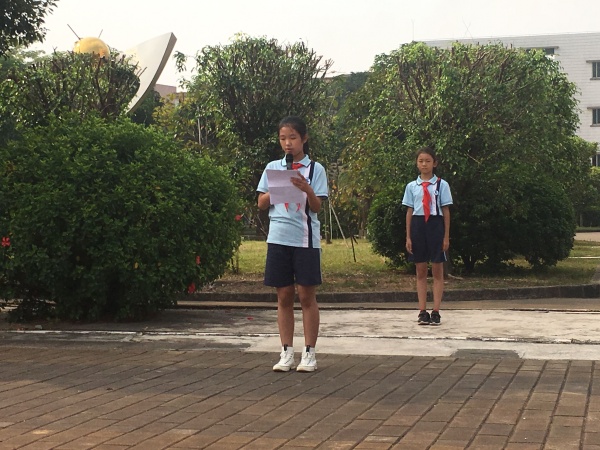 为增强全校学生爱护校园环境的意识,10月21日上午,我校全体师生在学校运动场集合,举行以“爱护校园环境”为主题的教育活动。