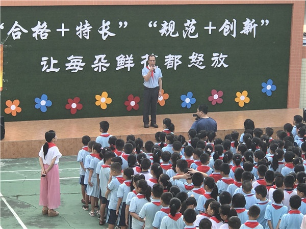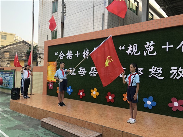 活动在中国少年先锋队队歌中拉开帷幕,学校少工委主任吴发志给予全校少先队员寄语和勉励,他希望队员们要坚定理想、崇德向善、知行合一,谨记校训“仁毅勤诚”,争做“人格自尊”、“学习自主”、“生活自理”、“行为自律”的新时代好队员。