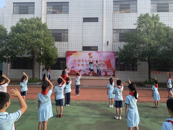 为庆祝中华人民共和国成立70周年,纪念少先队建队70周年,喜迎少先队广东省第七次代表大会的召开,教育引导广大少先队员听党的话、跟党走,用实际行动弘扬爱国主义精神,把红色基因一代代传下去,增强少先队员光荣感,在中国少年先锋队建队70周年纪念日期间,沙溪镇圣狮小学少先队在10月12日的早上开展了“红领巾与祖国共成长,争做新时代好队员”微仪式活动。