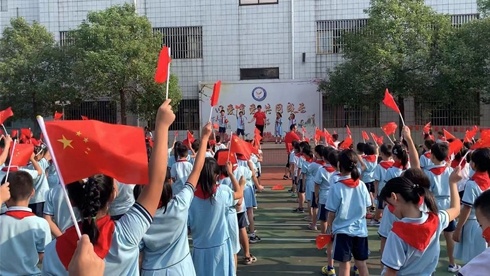 10月12日早上8点,又到了升国旗的时候,在沙溪镇圣狮小学师生的心中,这个仪式是一周一次最严肃庄严的大事——只见升旗手奋力挥动右臂,将鲜艳的五星红旗抛向天空,在雄壮的国歌的音乐的伴随下,全体师生目送鲜艳的五星红旗冉冉的升起,一起高唱国歌,肃然而立、凝神注目……