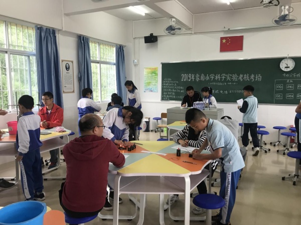 本次科学实验操作考核是由沙溪镇教育事务指导中心为落实市教育局《中山市教育和体育局关于开展2018-2019学年度中山市中小学试验操作考核工作的通知》文件精神而组织进行的,考核内容分别有:“测量不规则石块的体积”、“测量液体的温度”、“区别水、白酒、白醋”、“电路的连接”、“声音的产生”、“让气球膨胀起来”。参加考核的同学通过抽签的形式,在规定时间内完成以上考核内容之一。