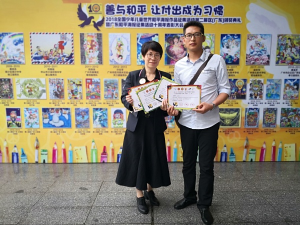 4月底,沙溪中学马世杰老师代表沙溪中学获奖师生赴广州辛亥革命纪念馆,参加“2018年全国少年儿童世界和平海报作品征集活动第二展区(广东)”颁奖典礼。沙溪中学陈若璇、傅天泽同学荣获广东省入选作品奖,马世杰老师荣获优秀指导教师奖。