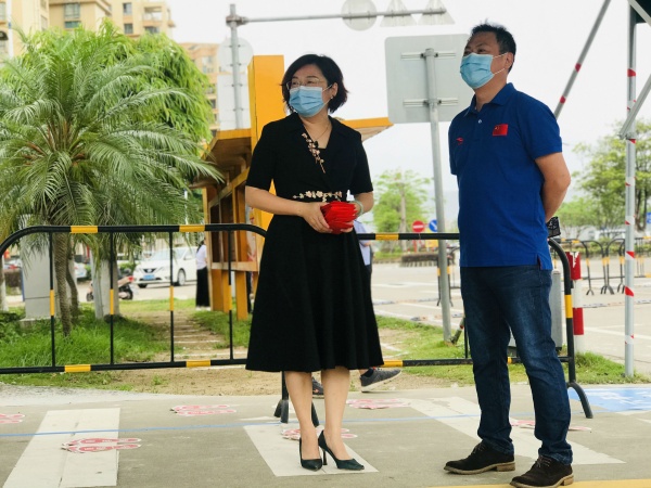 特殊的开学典礼后,神湾镇人大主席李明生在谭瑞香校长的陪同下,参观走访了学校校医室,查看防护物资的准备情况,询问检查了学校应急通道的完成情况,肯定了全校教职工为学生顺利返校付出的努力。另一边,神湾镇卫计局陈爱文同志亲自抵达学生校车乘坐点的北门,在邱继发副校长等人的陪同下,查看校车消毒清洁记录表、询问学生上下车体温检查的落实情况等,强调防疫防控期间也要常抓校车安全。为充分保障饭堂管理与饮食安全,在李健主任的带引陪同下,神湾镇食监所韩华彰所长一一查看了饭堂工作人员的健康证明材料,检查了仓库内粮米、鸡蛋等生活物资的储存情况,强调学校后勤部一定要确保食材的新鲜与安全,做到后勤力量有保障、学生饮食重安全。