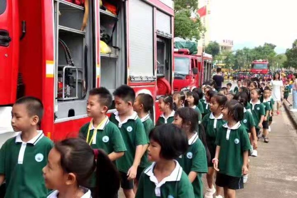 上午10点整,急促的警报声打破了校园的宁静,总指挥谭瑞香校长宣布演练正式开始,并向全校发布“掩住口鼻,弯腰前行,有序小跑”的疏散指令。话音刚落,只见各年级各班学生在班主任及各楼层值岗老师的组织带领下,有序快速地经由预定的撤离通道和路线到达了集合点;在校车上的学生,有序地由校车的跟车人员带领着沿疏散路线撤离。