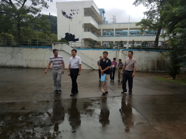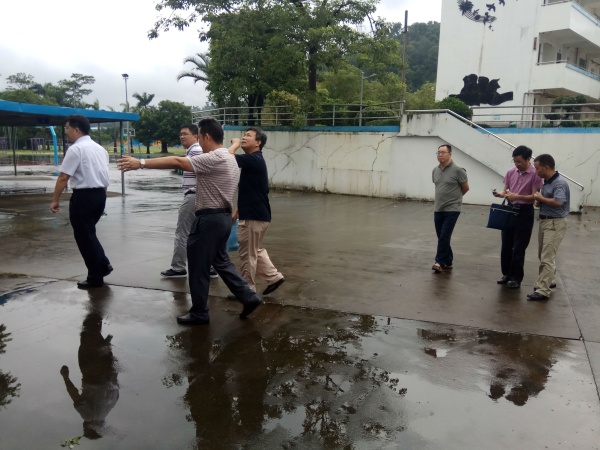 愉悦的暑假即将结束,新的学期就要来临。为了使各学校能平稳、顺利、有序地跨入新的学期,2018年8月30日,中山市教育和体育局以局领导为组长,分七个组到市直属及各镇区学校开展2018年秋季开学专项督导检查工作。以市教体局副局长黎国喜为组长的督导组冒着大雨莅临神湾中学开展专项督导检查工作,神湾镇党委委员张宁浦、教育事务指导中心主任朱宝明及神湾中学校长林干能全程陪同。