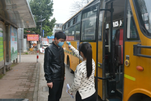 校车出发前一天下午消毒人员用含有效氯250mg/L—500mg/L的含氯消毒剂进行喷洒消毒处理;校车出发前打开车窗通风,然后出发去站点接学生;校车到达站点后,跟车老师郑凤娇逐一对乘坐校车学生进行体温测量,发现李同学的体温是37.3度,郑凤娇老师开始对其进行问询,问询内容包括学生的班别、姓名,以及是否在14日内从疫区返回或途经疫区、或与疫区回来的人士有过接触,问完情况后,郑老师拨打家长电话,由家长到停车点接学生到医院就诊,并报告给学校领导,学校领导层层上报。余校长接到报告后,立刻向神湾镇急诊中心报告。