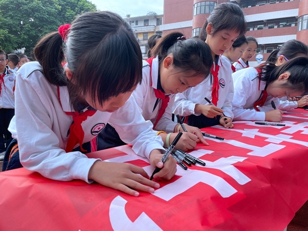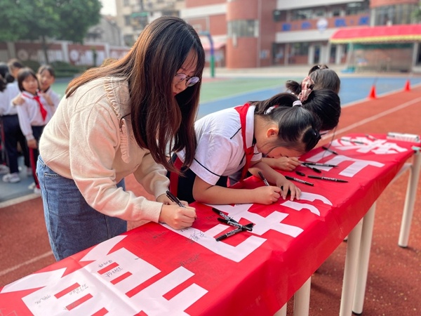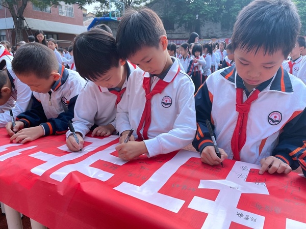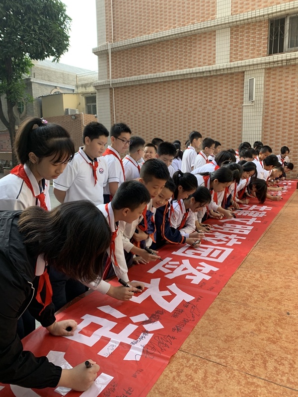 班会课上,各班班主任针对“扫黄打非,共建文明校园”这一主题,向同学们介绍了“扫黄打非”活动的积极意义。并通过图文、音视频等形式向同学们生动地介绍了“扫黄”与“打非”的含义。学生们认真地学习“扫黄打非”的知识,并在课堂上积极发表自己对“扫黄打非”的看法与认识。接着,三年级、六年级的学生代表全校学生,参与到“扫黄打非,共建文明校园”的签名活动中来。同学们在老师的带领下,以整齐有序的队伍一个接一个走到签名栏前,拿起笔慎重地签上自己的姓名。一笔一划书写出了每一位同学自觉抵制文化垃圾与非法出版物的决心,更书写出了他们对建设文明校园的信心。