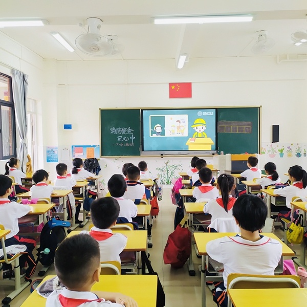 在消防演练开始之前,各班班主任先在班级中强调演练过程中需要注意的事项,要求同学们以严肃、认真的态度对待本次的消防演练活动,告知同学们相应的逃生路线和集合地点,并且为同学们示范了火场逃生的动作和姿势,以保证演练过程中的安全。警报拉响,各班迅速而有序地按照逃生路线下楼。在逃生过程中,所有同学都能手持毛巾,捂住口鼻,以半蹲的姿势迅速而有秩序地跑到集合地点。随后,石岐高家基小学的谭均和主任总结了此次的消防演练活动。谭主任表扬同学们能以严肃认真的态度对待本次活动,并且能迅速有效地完成任务,同时,谭主任还指出本次演练中存在的问题,希望同学们能改正不足,重视消防演练,深刻意识到消防安全演练的重要性。消防演练结束后,各班有序地回到教室,共同观看学习安全平台中的《2020年中小学生(幼儿)“119”消防安全教育专题》视频,以加深同学们的消防安全相关知识。