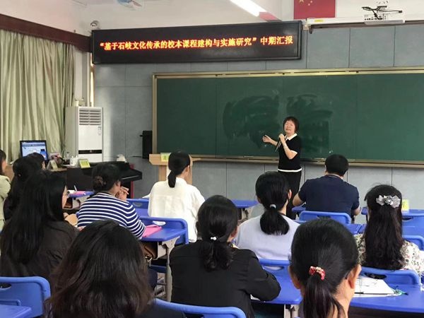 接着是两个课题的主持人分别进行中期研究汇报。郑结霞校长主持“基于石岐文化传承的校本课程建构与实施研究”这个课题。她从课题研究概述、前期研究基础、中期研究状况和后期研究思路四个方面进行了详尽汇报,既展示了课题研究的研究成果,更展示了她的管理情怀。田雅老师主持“思维发展与提升视角下小学中段童话整本书阅读教学的实践研究”课题,她人从课题研究背景、研究思路、阶段性研究成果、研究效果、问题展望五个方面汇报了课题进展,提出了课题研究的困惑。