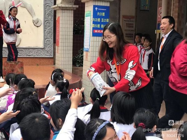 伴随着背景音乐《兔子舞》,在马伟萍主任的精心组织下,行政们走上舞台,为同学们送上兔年的祝福。属相“兔子”的6名老师也上台为大家送祝福,赢得了一阵阵的掌声;梁校长等行政和属兔的老师们分发给同学们一些白兔糖,寓意兔年甜甜蜜蜜、梦想如意。