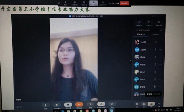 为建设一支思想素质高,育人技能强而富有教育智慧的班主任团队,开发区第三小学师生防疫在家也不忘练兵。2020年4月22日上午,三小25名班主任相聚云端在线上开展了班主任专业能力大赛。