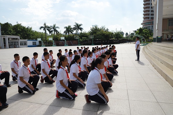 担任本次队列表演的评委,均是初二年级班干。五天集训,由初一年级班主任、体育老师,以及初二年级遴选的班干担任“教官”。初二年级34名班干,作为初一新生的小导师,主要向师弟师妹们讲解《自主教育手册》的“小职务,大舞台”、一日常规、楼道管理等自治管理与评价、值日班长培训、学习宣誓和总结等内容。