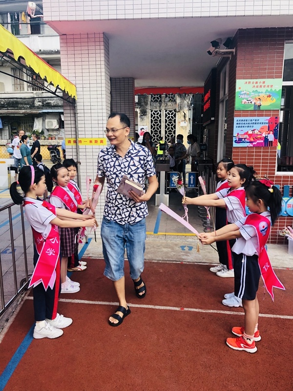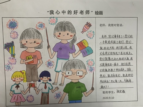 教师不忘初心,立德树人,学生们更难忘师恩。学校开展了以“我心中的好老师”为题的绘画活动,学生们纷纷画出了他们心目中老师的模样,并为老师写上了满满的祝福与感谢。与此同时,学校的学生礼仪队一早便整齐站立于校门口,手捧鲜花,代表全体学生为老师们送上节日的祝福。学生满满的祝福与感恩声让整个校园充满了温馨与爱。
