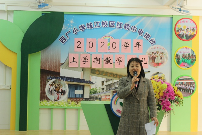 在散学典礼上,石岐西厂小学杨翠萍校长首先进行了总结,她说,2020年,是不平凡的一年,走过了不平凡的2020年,同学们变得更加坚强,更加懂得感恩,大家一步一个脚印茁壮成长!全校师生给一个学期的努力画上了一个完满的句号。她教育同学们不忘初心,再接再厉,再创辉煌。