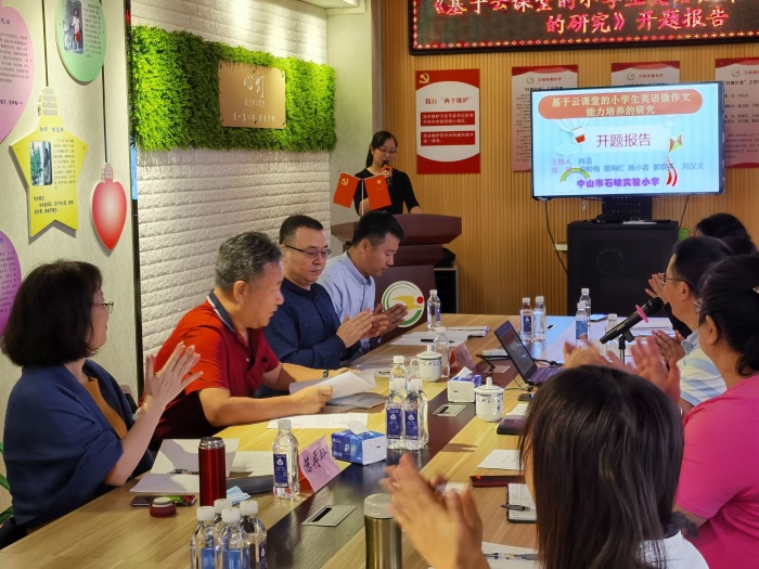 随着信息技术的飞速发展和互联网技术的广泛传播,传统的课堂教学迎来了一次翻天覆地的变革。云课堂是基于云计算技术的一种高效、便捷、实时互动的远程教学课堂形式。2020年10月21日,石岐实验小学申报的广东省教育技术中心课题《基于云课堂的小学生英语微作文能力培养的研究》开题报告会在班主任工作室举行。