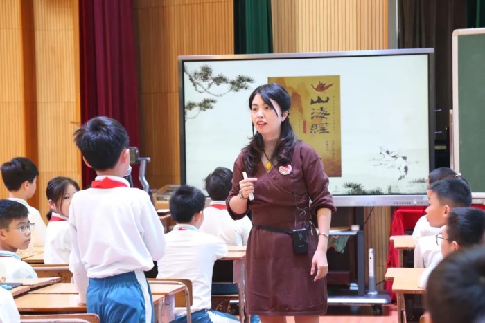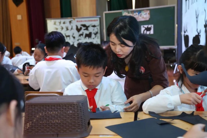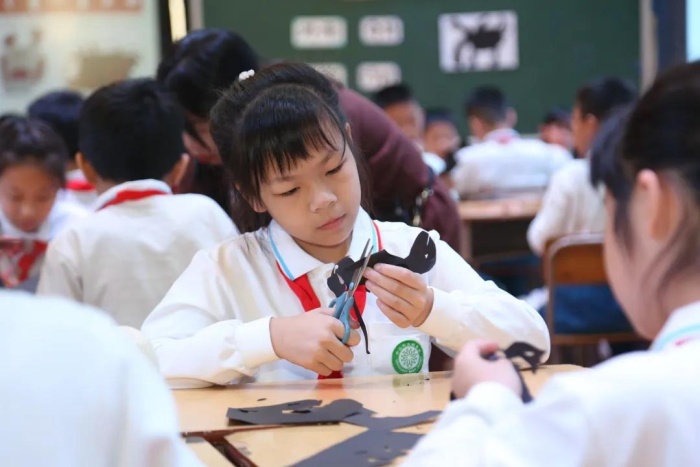 第二部分为观摩课和讲座部分。由大信学校刘丽妍老师带来的剪纸特色教学观摩课《山海经奇想》,从奇书《山海经》取材,结合“盲剪”的技巧,课程内容层层递进,整堂课无论是教学内容、教学设计还是组织形式都体现了很新的教学理念,教学思路清晰,目标明确,教学中突出学生的主体地位,注重培养学生各种能力,课堂开放而富有活力。多媒体“希沃”白板的运用,让信息技术完全为课堂的重难点服务,事半功倍,一箭双雕。