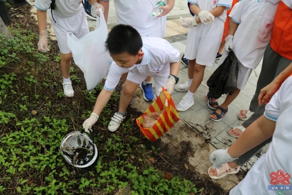 整个活动以班级为单位,大信学校一(3)班和二(3)班都有志愿服务小组及其组长。活动过程中,家长与孩子密切配合,积极主动的拿着垃圾袋,戴着手套把江边的烟头,塑料袋,饮料瓶等垃圾一一捡起。孩子们都觉得这样的活动意义非凡,大家的积极性都很高,虽满头大汗,仍觉得乐意无穷。