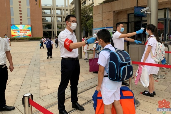 5月18日,石岐中心小学大信学校依据省、市、区各上级部门统筹工作安排,迎回了返校复学的第一批四、五、六年级学生。此前,在上级工作部署和指引下,学校疫情防控工作及复学复课准备工作一切就绪。早上七时许,学校冯冠祥常务副校长、总务处谭志凌主任、办公室于海洋副主任抵到达校门,欢迎同学返校,为入校同学测量体温,引导学生有序入校。石岐中心小学大信学校全体教职工、四至六年级全体学生按时返回,有序开展复学后校园工作与学习生活。