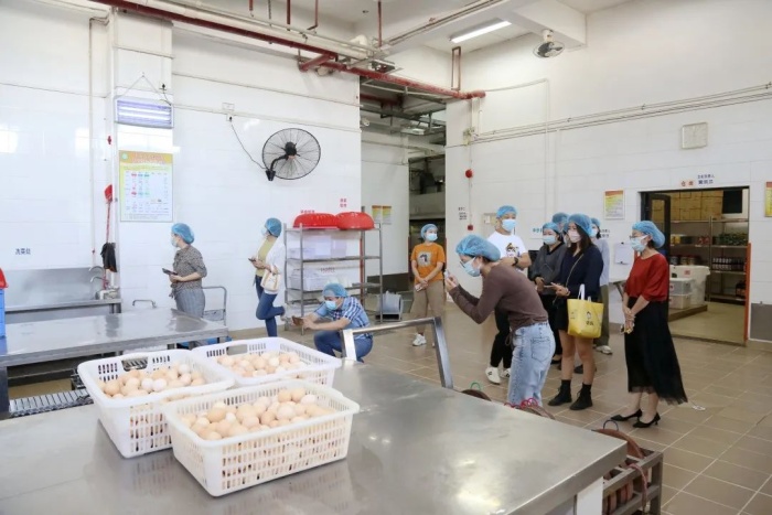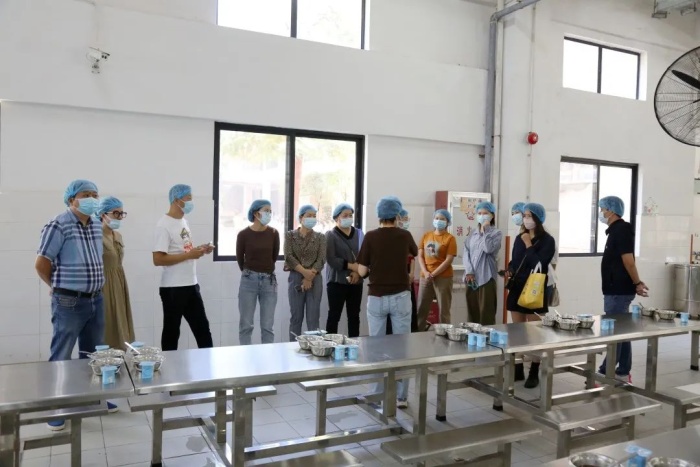 10月11日中午,初中部九年级的家长代表参与了此次家长陪餐活动,他们在学校高静副校长、食堂负责人李小玲主任的陪同下一起到食堂实地查看,对食堂的仓库、厨房、洗消间、加工区域、烹饪间、食品库等区域进行了参观,李小玲主任对餐饮原料的采购存放、加工过程管理、品质监控、餐具回收消毒等情况进行了详细的说明。