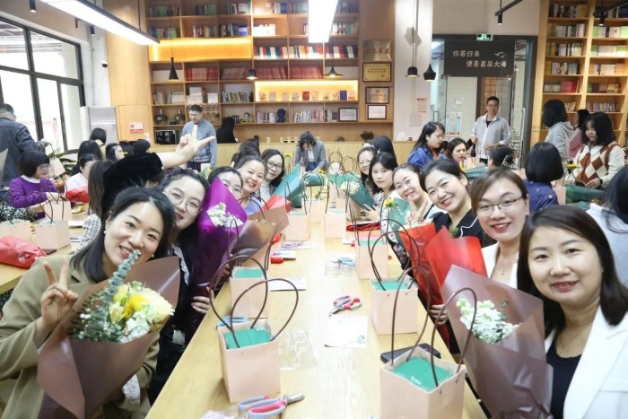 3月8日上午,全体教职工利用空堂时间纷纷来到饱含诗书气息的图书馆,参加学校工会精心准备的插花活动。学校特邀插花专业人员到现场指导。在花艺师的指导下,大家认真学习,精心挑选自己喜爱的花束,搭配出自己喜爱的造型,一束束生机勃勃充满爱意的鲜花在老师们手中诞生。