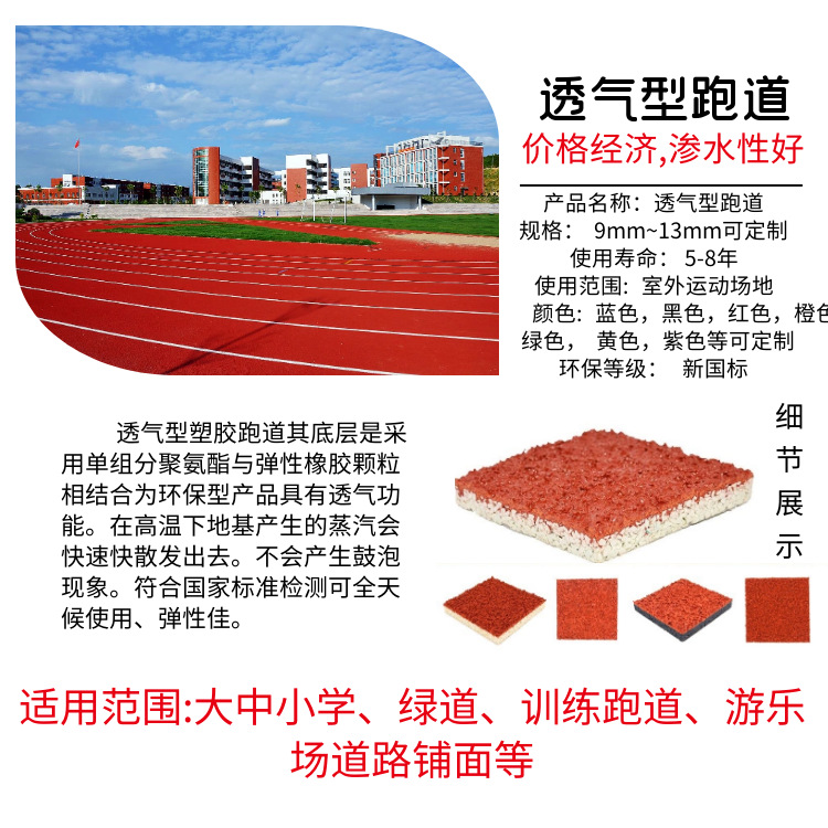 3、防止有害物资的净化,常常维持干净,防止猛烈的机械冲击与磨擦,跑道上不准车辆行驶,堆压重物和犀利之物等(规范跑鞋除外)。运动必须穿专门的静止鞋,钉子长度个别不超越7毫米,跳鞋个别不超越11毫米。若静止鞋带有较长的钉子时,则不许可在塑胶跑道上运用;