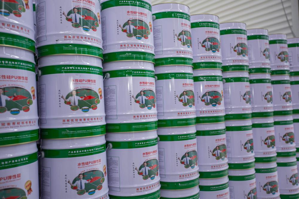 4mm二代水性硅PU环保塑胶球场材料,出厂材料价67元/平方。