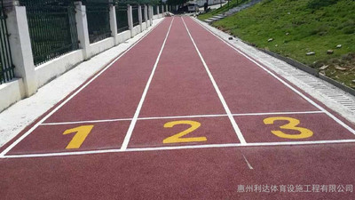 混合型喷颗粒塑胶跑道不受气候等条件的影响,强度高、高耐磨、场地平坦均匀,可吸收震动、防震隔音、弹跳自如、防滑、弹性好、耐低温,场地硬度适当调节。由于场地色彩鲜艳美观给运动场一种舒适兴奋感,有助于运动员提高成绩。