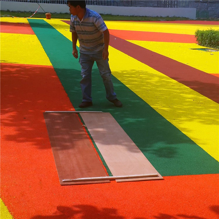c)刮面胶,在面胶未固化前,撒上红颗粒,待其完全固化后,将多余面胶粒清扫干净。