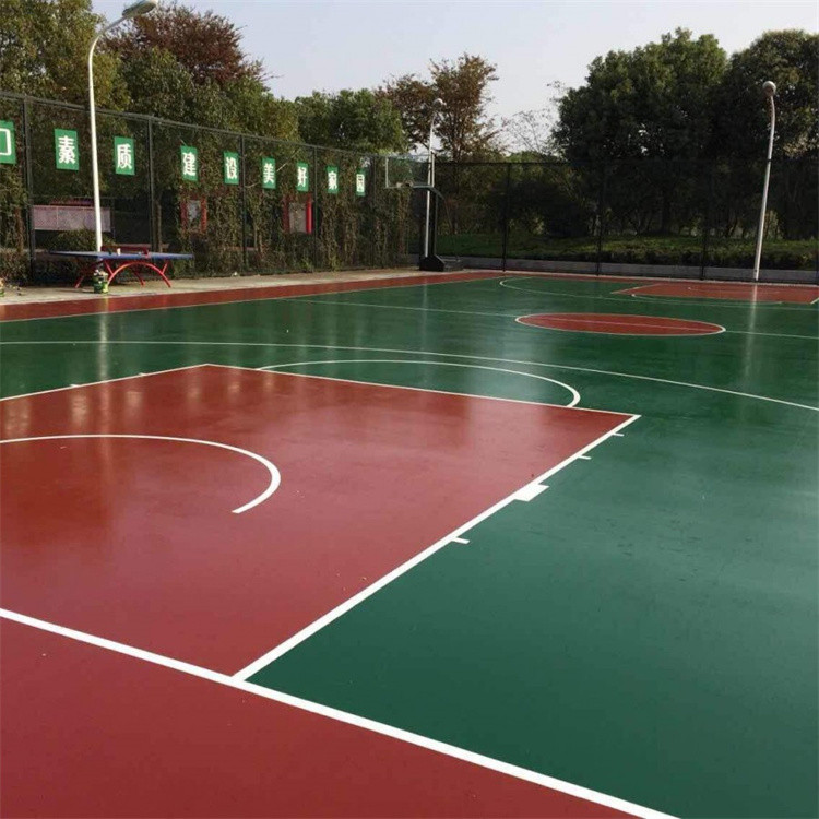 6. 平整度校检找平:为保证整个场地铺装平整,厚度均匀,施工前用自来水对整个场地进行浇水,浇水要全面彻底,且要采用慢注漫流、严禁强冲,待积水处理干后,凹陷积水之处用笔做好记号,用混合底料补平,直到将整个场地凹陷处补平,没有积水现象为止。