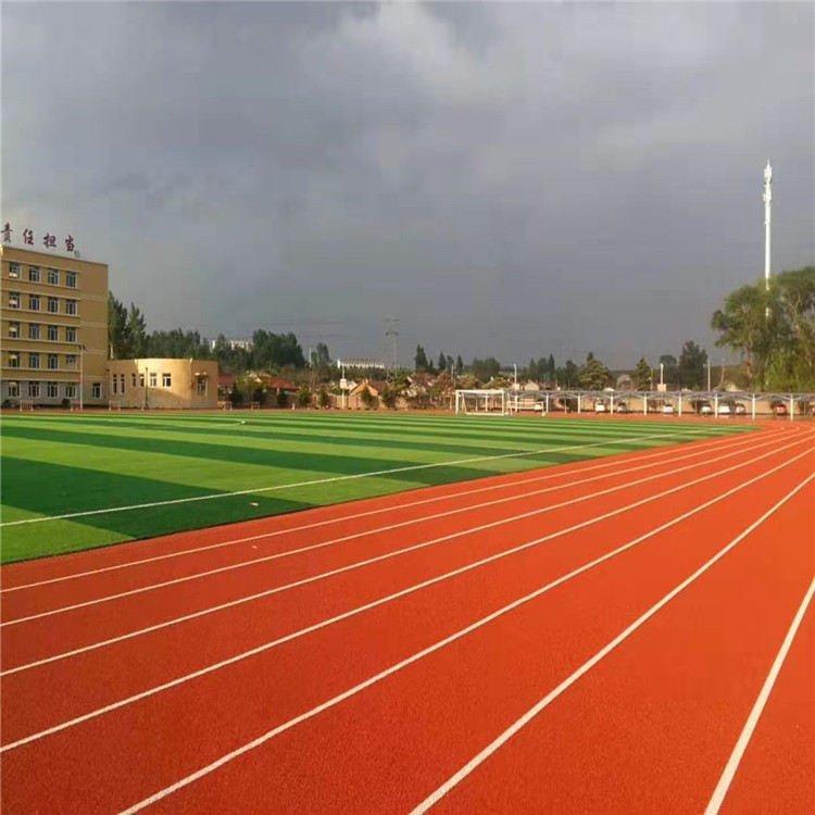 塑胶跑道的特点色彩:专用聚氨酯颗粒,表面颜色柔和,颗粒状表层,防止耀眼刺眼阳光的反射,美观耐久,并可采用多色彩搭配。经济:维护便利,节省治理用度。性:可防止跌倒所发生的运动伤害。粘接性:特殊施工处理,粘接力强,可按捺水分上升,无气泡,剥离等现象。平坦性:施工使用自流平材料,表面平坦,能符合特别平坦的比赛场地要求。耐冲击力:具有强韧的弹性层及缓冲层,可吸收强劲的冲击,表面不会受损。抗钉力:在受力**使用*频繁的百米起跑点,也不会受到钉鞋或起跑架破坏。耐磨缩性:不会由于田径器材的重压而无法恢复弹性。耐磨性:耐磨耗性小于2.5%,满足各级学校长时间,高使用频率的需求。冲击力吸收:适度吸收脚步冲击力,减少运动伤害,长期训练及比赛均相宜。塑胶地面基础为全部场所之压根所属,它立即关联到将来此片场所的使用年限及质量管理体系。基础分成:沥清基础和混凝土混凝土基础二种。塑胶地面的品质巨大水平在于此片场所基础的优劣;好的基础是取得成功的刚开始,根据整体面层建筑涂料的特点及充分考虑场所的使用期等。