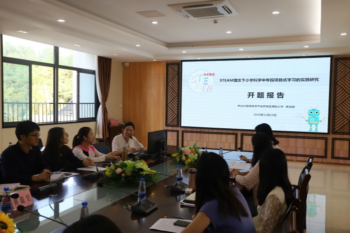 会上,开发区博凯小学几个课题主持人先后作开题报告,介绍课题研究方案。黄浩婷老师向大家介绍了课题《STEAM理念下小学科学中年段项目式学习的实践研究》的研究意义、研究现状、研究目标、研究内容、主要创新之处、研究方法、研究计划、预期研究成果等内容。