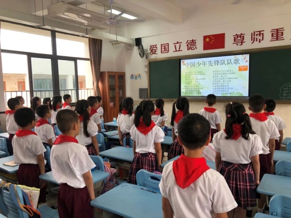 在课堂上,同学们认真地聆听老师的讲解,通过学习少先队的历史,激励同学们从小就要养成良好的行为习惯,一起努力争做合格的共产主义接班人。接着,学习自己佩戴红领巾、正确佩戴好队徽,嘹亮的中国少年先锋队队歌在校园里回荡。