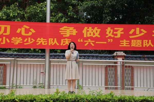 上午8点10分,全体师生齐聚学校操场举行了庄严的升旗仪式。四5班全体同学身着整齐的中山装,在迎风飘扬的国旗下,齐声高唱建党百年宣传曲《少年》,轮番高举的一幅幅图画展示了建党百年的光辉历程,昂扬的歌声展现了新一代少年儿童的活力与风采。随后,副校长陈虹岗上台致辞,她给孩子们送上了节日的祝福,教育孩子们要感恩先辈,热爱祖国,珍惜得来不易的幸福,并希望同学们不断提高自己的品德修养,当好社会主义接班人,好好学习科学文化知识,练好本领,长大成为国家的栋梁之才。