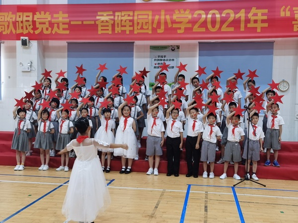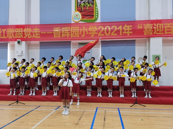 为庆祝中国共产党建党100周年,展现学生热爱祖国、朝气蓬勃的精神风貌,坚定少年儿童跟党走的信念,2021年5月13日,开发区香晖园小学以“红领巾心向党 高唱红歌跟党走”为主题,举行了“喜迎建党百年”的校园合唱比赛。