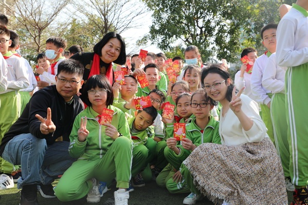 据悉,这些“利是”由学校德育处统一准备,每个“利是”中装着“金币巧克力”,祝愿孩子们前程似金币般闪耀夺目,生活似巧克力般甜蜜。最后,全体师生高举“利是”,齐声祝愿“新年快乐”,现场汇聚成一片红色的欢乐海洋。
