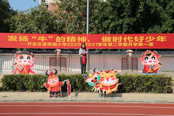2月22日,开发区香晖园小学迎来了牛年的开学第一天,校园里洋溢着喜庆欢腾的气氛。