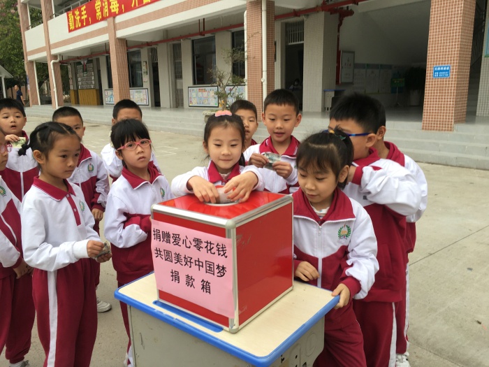 引导少年儿童践行社会主义核心价值观,加强少年儿童思想道德素质教育,培养少先队员互帮互助、齐心协力的团队精神和与人为善、助人为乐的良好品质。3月3日上午,学校少先队大队部向全体同学发出倡议:伸出你温暖的双手,省下你的零花钱,献出你的爱心,帮助那些热切希望得到援助的同学。你的点滴付出也许能使他们暗淡的生活重新迸发出灿烂的光辉,让希望的光芒照亮他们的前程。队员们纷纷响应,慷慨解囊献出自己的一份爱心,有的拿出自己的零花钱,有的拿出积攒的“小金库”,有的还把爸爸妈妈的爱心一起带来;1元,5元,10元……甚至50元,以实际行动来诠释馥郁芬芳的爱心。