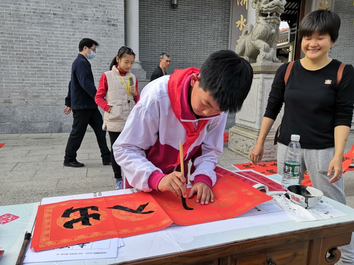 1月28日下午,李堆威、丘志伟两位老师带领着开发区第一小学书法社团的学生参加了由火炬区书法中心教研组与濠头联富社区联合举行的“迎新春送春联”活动。当天活动现场处处洋溢着浓浓的新年节日氛围,开发区第一小学书法社团的“小书法家”们自信大胆地展现了扎实的书法功底,得到了社区居民一致称赞。短短的2个小时,开发区第一小学的“小书法家”们书写了近百幅春联,将这些春联凝结成一份份美好的祝福,真挚地送给社区居民。