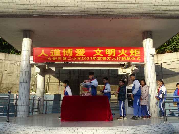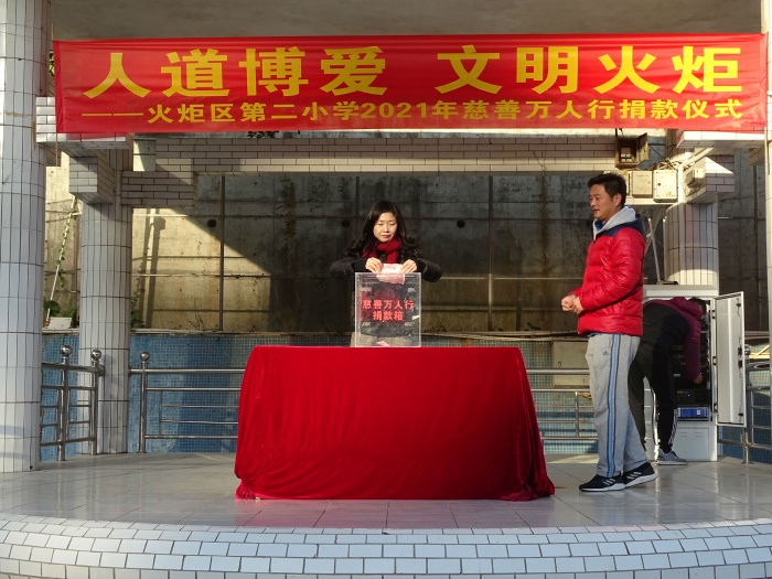 为积极响应2021年市、区慈善万人行活动倡议,弘扬人道博爱精神,倡导中华美德,唱响新时代主旋律,营造互帮互助互爱的社会氛围,为建设文明火炬区加快高质量崛起贡献力量,2020年12月31日上午,开发区第二小学举行主题为“人道博爱,文明火炬”2021年慈善万人行义捐活动。