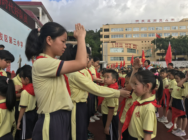 此次活动,为少先队组织增添了新鲜血液,展示了三小少先队员积极、乐观、向上的精神风貌,更激发了他们爱党、爱国、爱学习的热情,坚定了他们听党的话跟党走的理想信念,牢固树立了社会主义核心价值观,努力成为新时代的优秀少先队员,准备着为实现中华民族伟大复兴的中国梦贡献力量!
