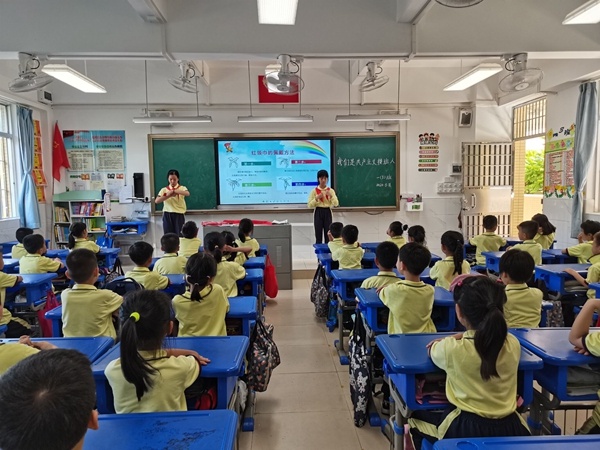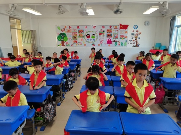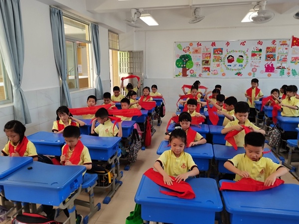 为了进一步培养学生热爱党、热爱祖国、热爱人民的高尚品质,激励他们争当新时代好队员,2021年5月18日下午,在迎来中国共产党建党100周年之际,火炬开发区第三小学大队部利用少先队活动课,由大队委员为一年级的同学开启了生动而严肃的教育活动,孩子们备受鼓舞爱国爱党之情更加饱满,对加入中国少年先锋队充满期待!