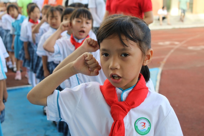 据悉,在入队仪式前,一年级的预备队员进行了队前考核闯关。让每一位预备队员了解少先队理论知识、正确佩戴红领巾、敬标准队礼、呼号等。从而激发孩子们对少先队组织的向往。