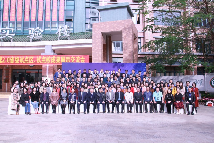 广东省教师继续教育指导中心主任邓旭峰、提升工程办主任、广二师网络教育学院院长贾汇亮、提升工程办副主任、广二师网络教育学院副院长汪和生、华南师范大学教育信息技术学院教授焦建利、视源股份未来教育集团副总裁黄逸涛、中山市教师发展中心主任吴寒冬、中山市工程办副主任陈明宏、 广东省财经职业技术学校主任刘映春、火炬开发区文体教育局局长姚玉瑜、火炬开发区教育事务指导中心副主任关影红,以及来自80个试点校、25个试点区的领导教师们。
